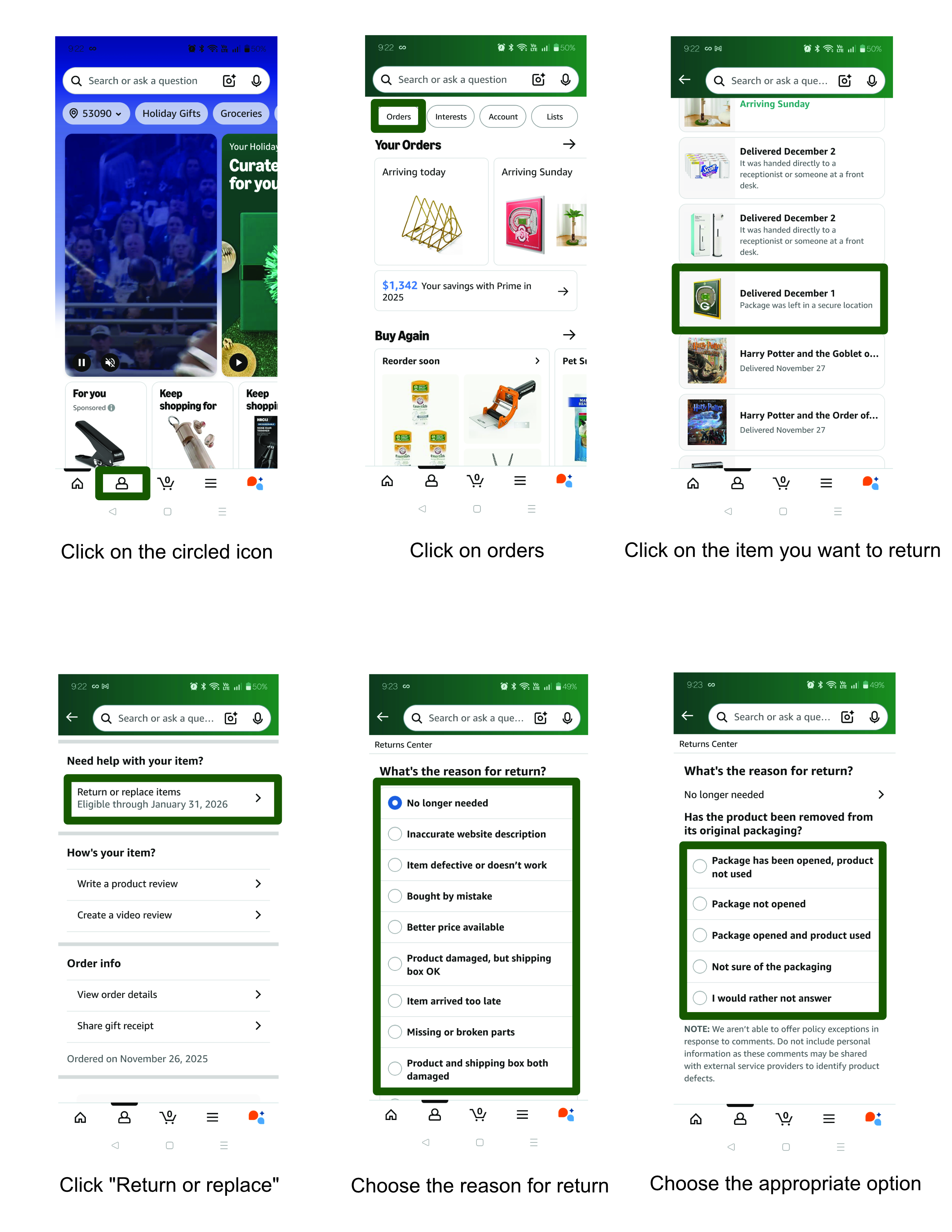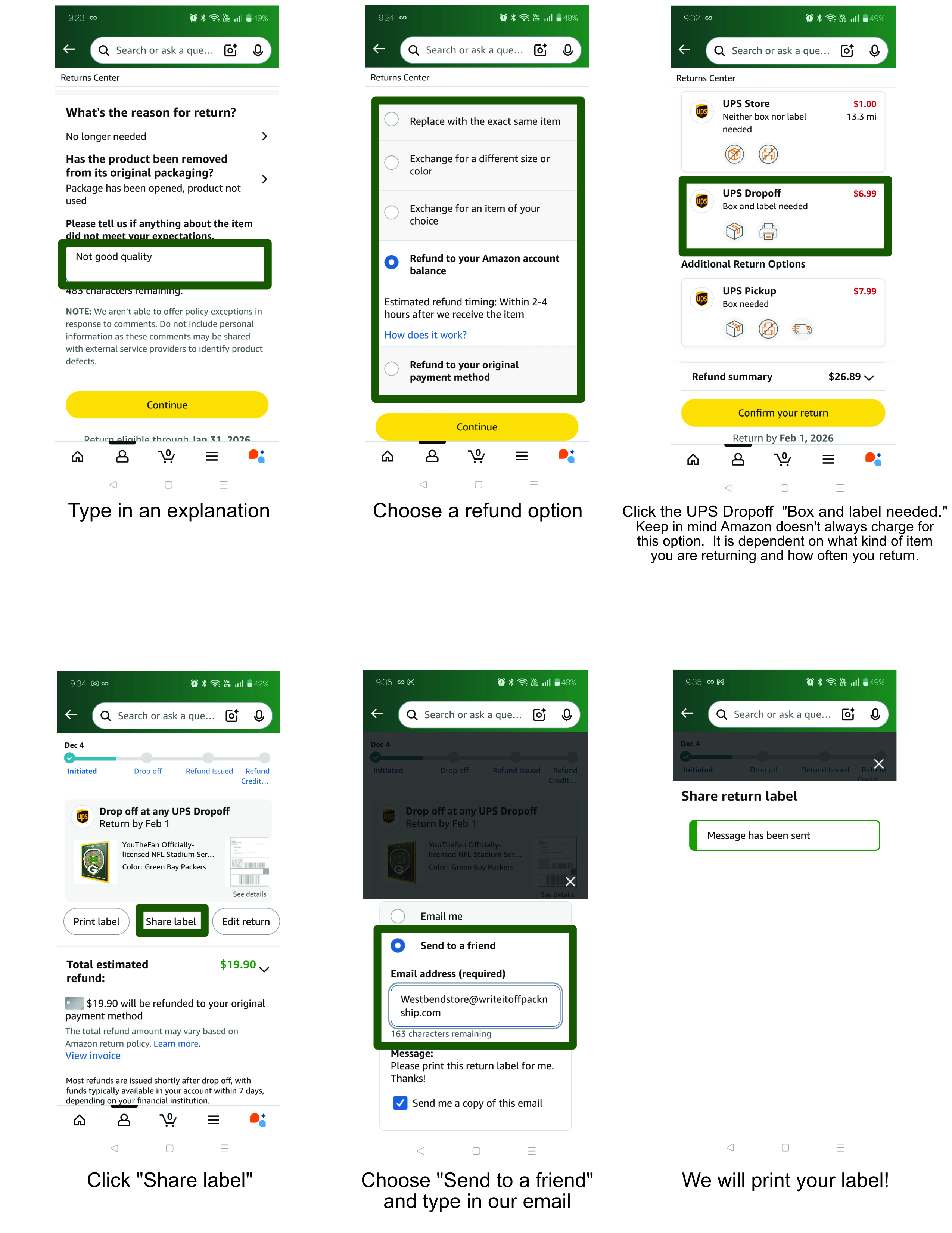 PLEASE CLICK ON THE IMAGES BELOW AND FOLLOW THE INSTRUCTIONS TO GET A PHYSICAL LABEL THAT WE CAN USE FOR YOUR AMAZON RETURN DROP OFF.